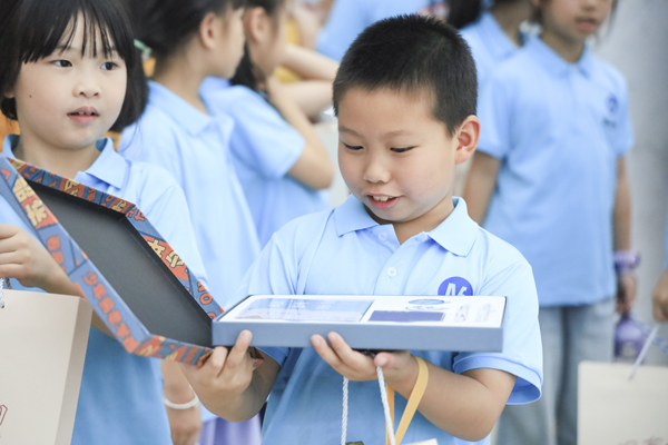 孩子们收到纪念品